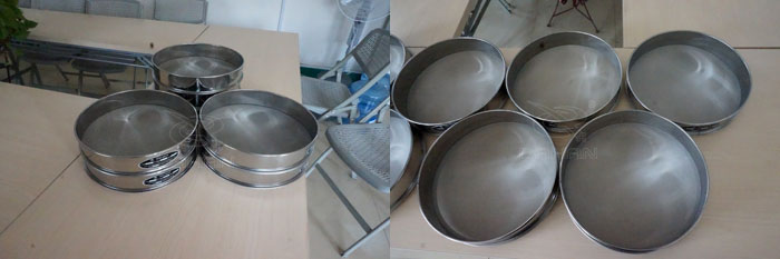 標(biāo)準(zhǔn)篩測(cè)定物料粒度組成所使用的一套標(biāo)準(zhǔn)篩具。是篩析的主要工 具。它是由一套篩孔尺寸大小有一定比例的、篩孔寬度和篩絲直徑都按標(biāo)準(zhǔn)制造的直徑為200mm的若干層圓形篩子所組成。有蓋和底,可手工操作也安裝在機(jī)上進(jìn)行篩分。只要知道篩比和基篩這兩個(gè)參數(shù),就可以算出該系列標(biāo)準(zhǔn)套篩的各個(gè)篩子的篩孔尺寸。根據(jù)篩比和基篩篩孔尺寸的不同,分成各種標(biāo)準(zhǔn)篩制。